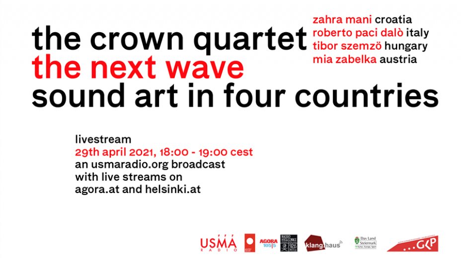 Das „Crown Quartet“ wurde im Mai 2020 inmitten des Lockdowns gegründet. Das Quartett spielt eigene Stücke, die Elemente der Komposition und der Improvisation verbinden, um einen strukturierten und fließenden musikalischen Austausch zwischen vier einzigartigen Stimmen hörbar zu machen. Mia Zabelka, Tibor Szemzö, Roberto Paci Dalò und Zahra Mani arbeiten bereits seit einigen Jahren in diversen Konstellationen miteinander. Die Gründung des Quartetts ist aus dieser langjährigen Kollaboration entstanden.